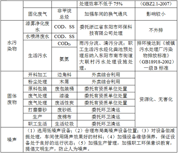 公司通過了ISO 14001管理體系,對公司環(huán)境管理體系的運行情況實施定期和不定期的檢查。三廢方面,公司的生產廢水經處理達到GB 8978-1996《污水綜合排放標準》三級排放標準標后排入市政污水管網;公司通過選用低噪音設備、指定專人負責技術設備的維護保養(yǎng)等方式減少噪音,每年委托專業(yè)的第三方檢定公司對公司生產區(qū)域進行測量檢定,長期發(fā)放勞保品預防;固體廢棄物經收集后或回收利用,或委托有資質單位處理,生活垃圾則由當地環(huán)衛(wèi)部門處理,保證了污染物非正常排放。