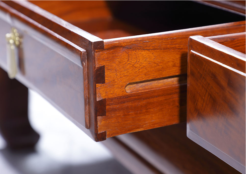 國祥紅木家具工藝皆來自傳統(tǒng)。全榫卯結(jié)合,在結(jié)構(gòu)方面不用釘、膠,以榫卯斗合方式組成一體,在經(jīng)過反復(fù)烘干萃取水分,不止能有效控制家具變形、縮漲,經(jīng)久耐用,也能廣泛適宜大江南北的氣候,可以傳世。